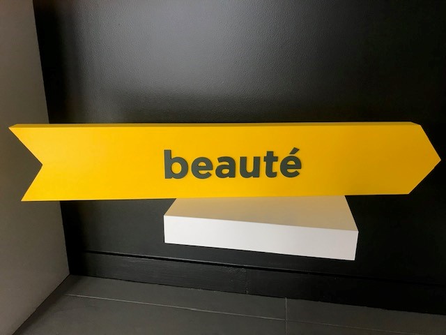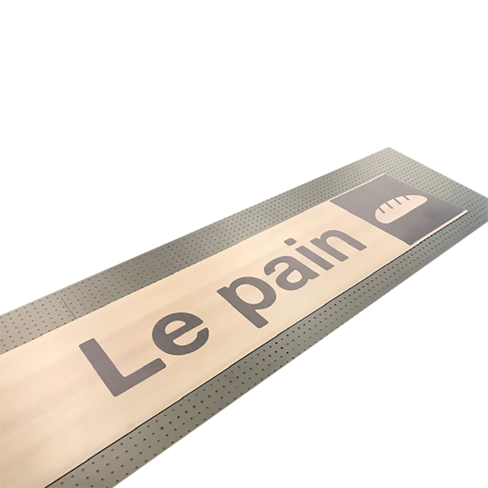 Les éléments de signalétiques permettent d’identifier un rayon, un espace, un lieu de vente par un lettrage, un logo, un bandeau.