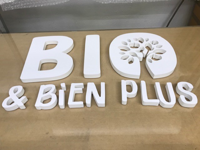 usinage matière teintée masse ou laquage, impression au Pantone, adhésif, découper du PVC magnétique avec des formes complexes etc….